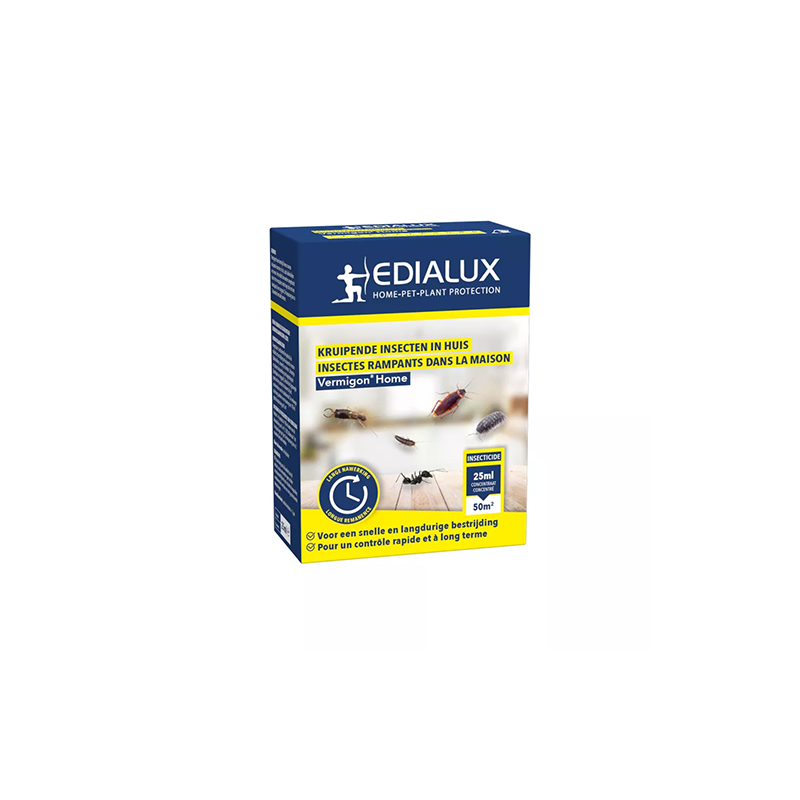 Vermigon Home est un produit avec longue durée d'action contre les fourmis, les cafards, les puces, les lépismes et de nombreux autres insectes rampants.