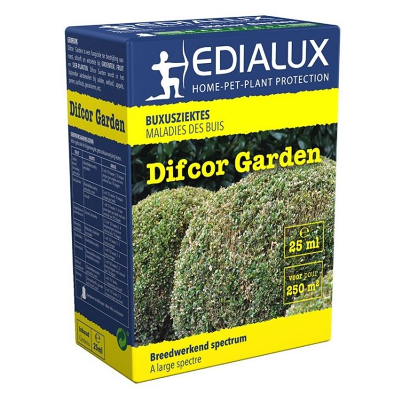 Difcor Garden Buis 25ml est un fongicide contre le dépérissement des rameaux en buis.