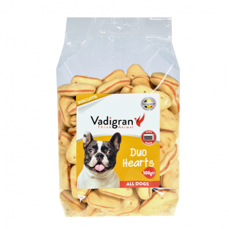 Utilisés comme récompense les biscuits Duo Hearts sont idéaux pour l'éducation des chiots et des petits chiens mais ils peuvent également être donnés aux plus grands chiens en quantité et/ou avec une fréquence plus importante.