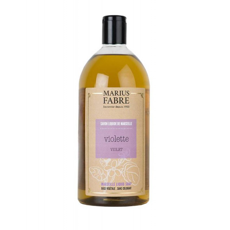 Recharge 1L Savon Violette Bien-être sans huile de palme. Recharge 1 litre. Parfum violette. Huiles 100% végétales, sans huile de palme, sans colorant, biodégradable, emballage recyclable.