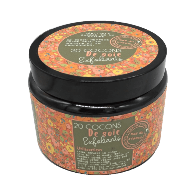 Véritable cadeau de la nature ces cocons de soie exfoliants sont présentés dans un gros pot en verre ambrée réutilisable.