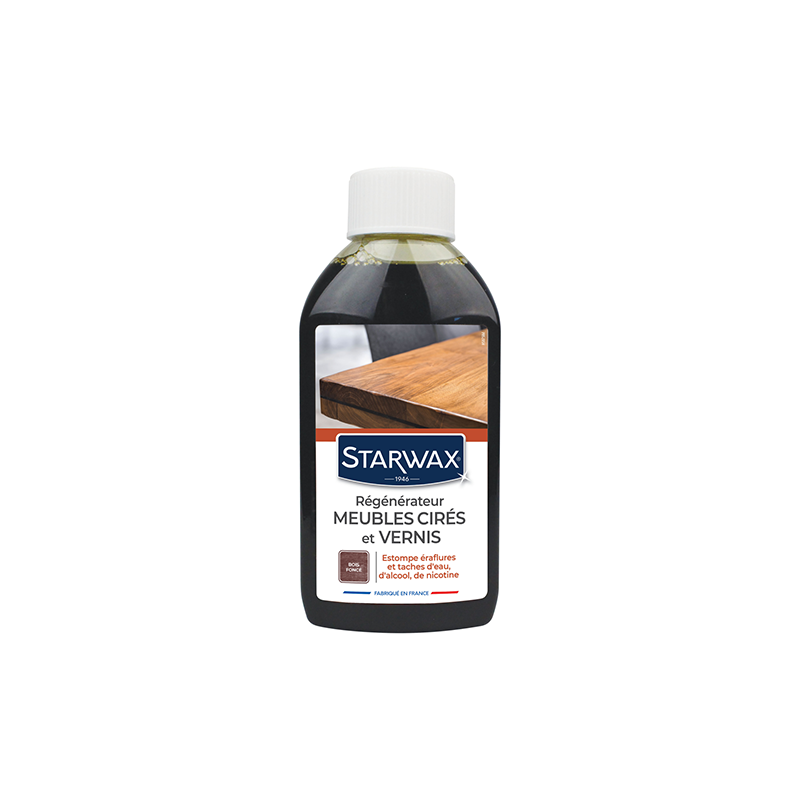 Le Régénérateur meubles bois cirés ou vernis estompe les éraflures superficielles et ravive la teinte et l’éclat des meubles cirés et vernis. Il est aussi particulièrement efficace pour éliminer les taches d’eau, d’alcool, de nicotine et d’encrassement.