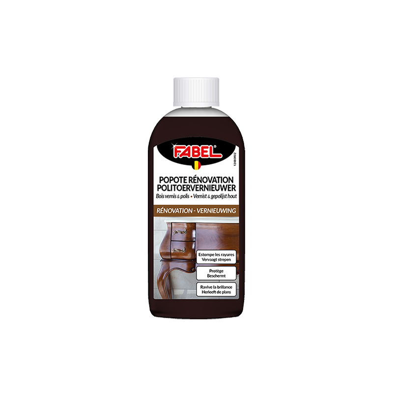 La Popote de rénovation Fabel s’utilise sur les meubles vernis au tampon et polis. Elle permet de redonner une belle brillance et de rénover les meubles légèrement griffés. Produit avec une haute concentration en gomme laque véritable de qualité supérieure.