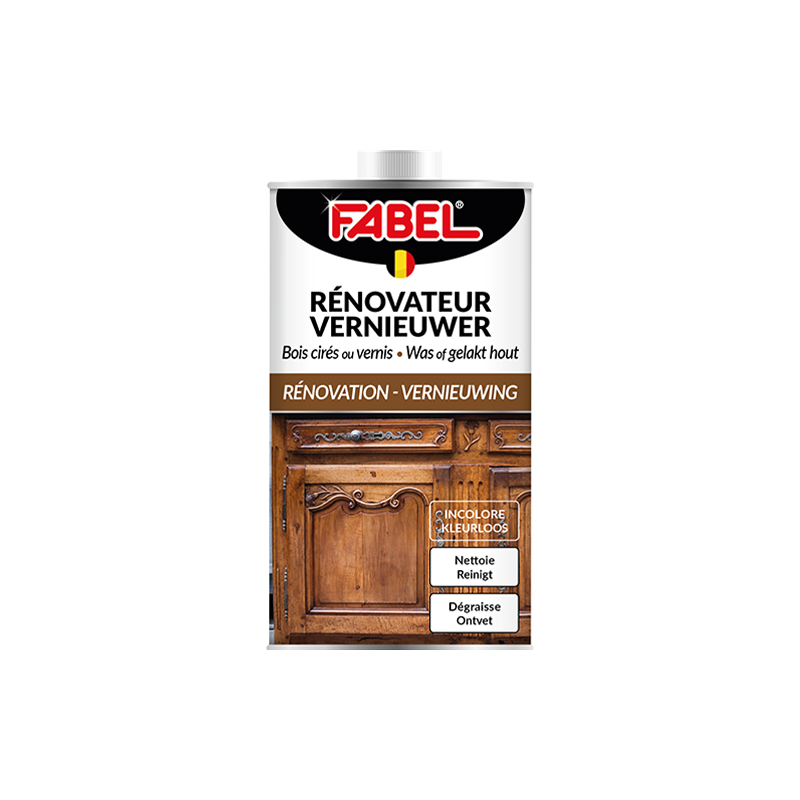 Le Rénovateur Meubles de Fabel est un produit incolore qui dégraisse, nettoie et entretient les meubles cirés ou vernis. Il estompe les griffes superficielles et redonne aux meubles leur éclat.