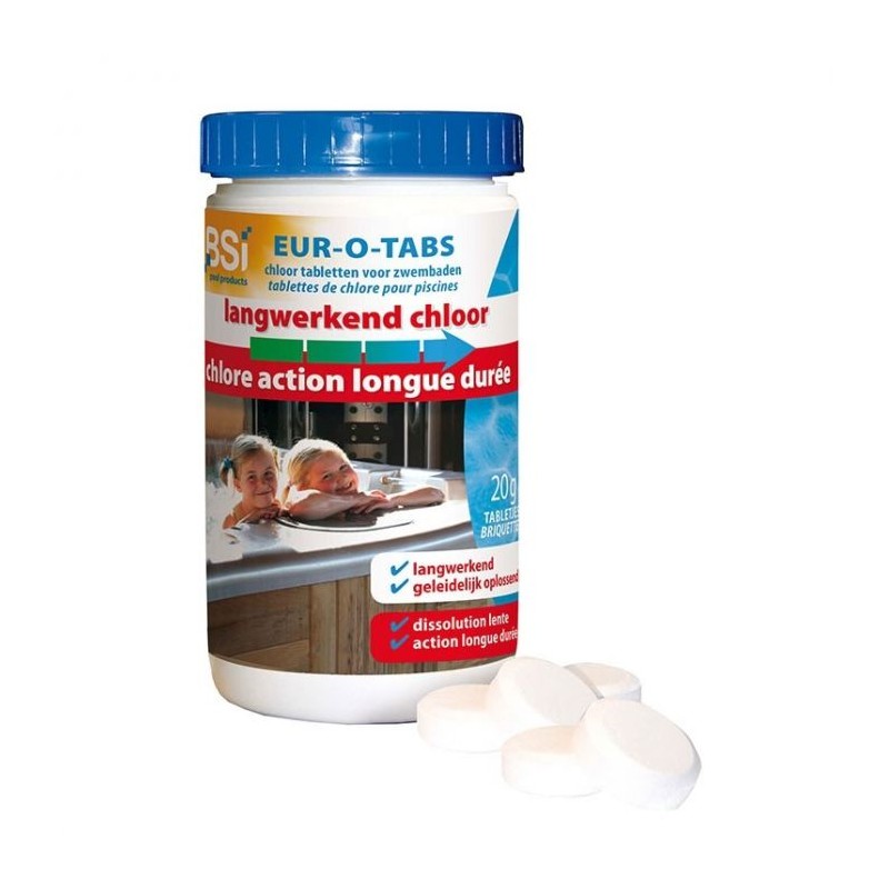 A la recherche de petites tablettes de chlore pour votre piscine ou jacuzzi ? Ces tablettes 20 g Chlore Action Longue Durée de BSI vont maintenir la teneur en chlore de l'eau de votre piscine ou jacuzzi au niveau idéal. Les tablettes se diluent très lentement et restent actives jusqu'à deux semaines. Une seule tablette est assez pour le traitement d'une petite piscine ou jacuzzi pendant 2 semaines. La solution idéale pour chlorer continuellement votre piscine.