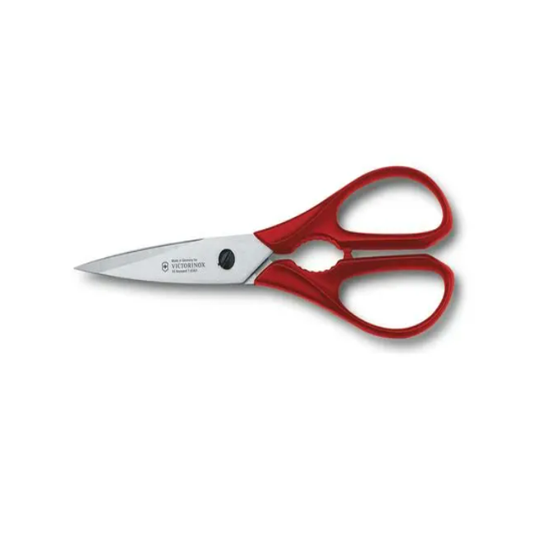 Les ciseaux de cuisine universels de Victorinox sont des outils complets pour la cuisine. Les lames conçues en acier inoxydable incroyablement résistant disposent de micro-dents qui adhèrent aux différentes matières à découper. Comme tous nos produits, les branches de ces ciseaux de cuisine sont robustes, pratiques et en matière synthétique incassable. Les branches des grands ciseaux disposent d’une forme permettant de casser les noix ou d’aider à ouvrir les bouchons à vis récalcitrants.