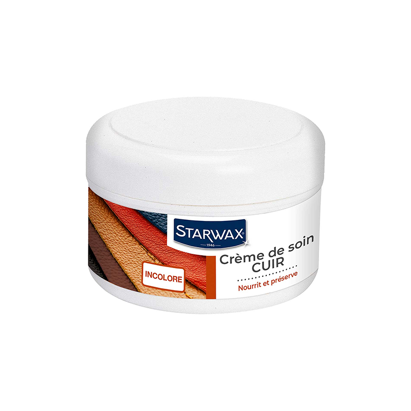 Pour traiter le cuir desséché, essayez la crème nourrissante de Starwax. Elle réhydrate en profondeur et redonne au cuir son éclat d'origine et sa souplesse. La crème est incolore pour que vous puissiez l'utiliser sur des coloris clairs et foncés. La crème est produite à base de lanoline (type huile pied de boeuf).