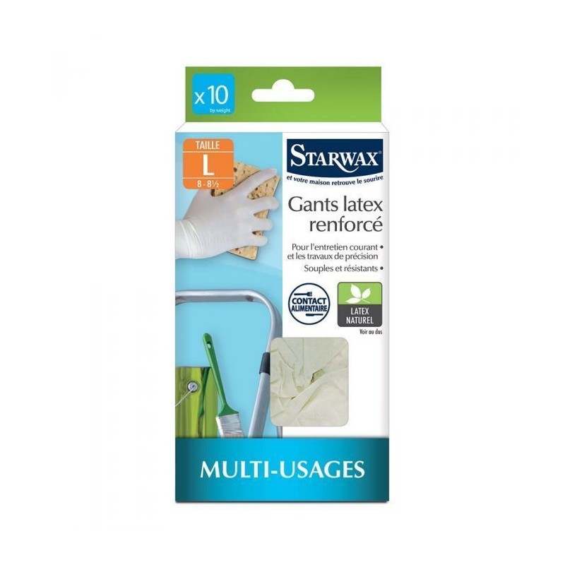 Très souples, les gants latex sont recommandés pour la vaisselle, le nettoyage courant et les petits travaux (sauf contre-indication éventuelle du fabricant), Ils confèrent une bonne sensibilité tactile pour les travaux de précision, Facile à mettre et à enlever, ils sont pourvu d'un intérieur poudré pour limiter la transpiration, Ils sont également étanches et protègent contre les éclaboussures.