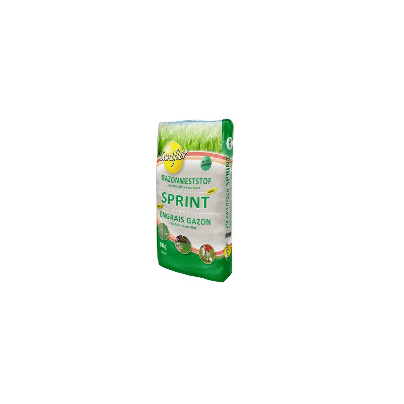 ENGRAIS GAZON SPRINT 20 KG de Van Israel : Comme son nom l’indique bien cet engrais minéral SANIFLOR a été étudié pour donner un résultat très rapide notamment grâce à sa forte teneur en azote. Votre pelouse recevra une véritable nourriture « coup de fouet » et arborera une teinte verte extraordinaire. 2-3 applications d’avril à fin septembre vous garantira un superbe gazon toute l’année !