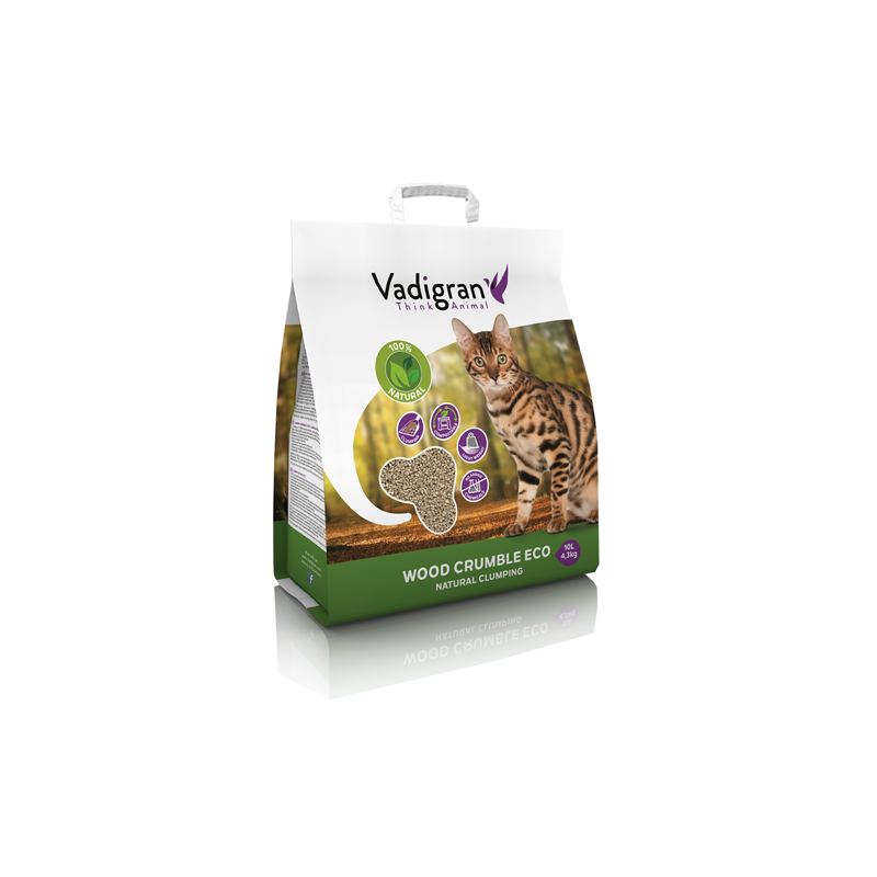 Wood Crumble ECO est un produit 100% naturel qui forme rapidement et efficacement des agglomérats. L'humidité et les odeurs désagréables sont absorbés de manière optimale.