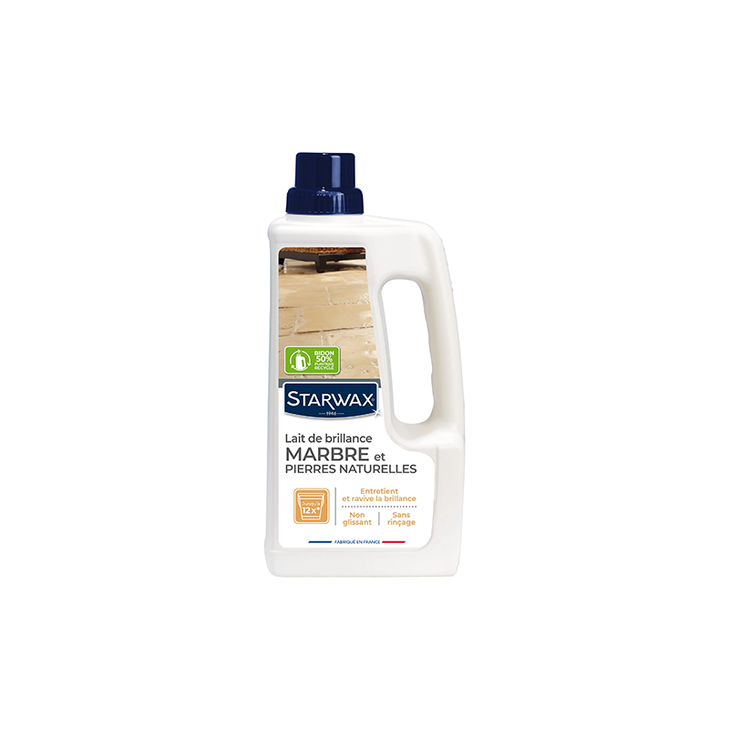 Le Lait de brillance pour marbre et pierres naturelles permet de nettoyer et raviver la brillance de vos sols, Il s’applique 1 à 2 fois par mois et ne nécessite pas de rinçage, Il est idéal après une rénovation avec le Rénovateur brillant protecteur car il va en renforcer la brillance.