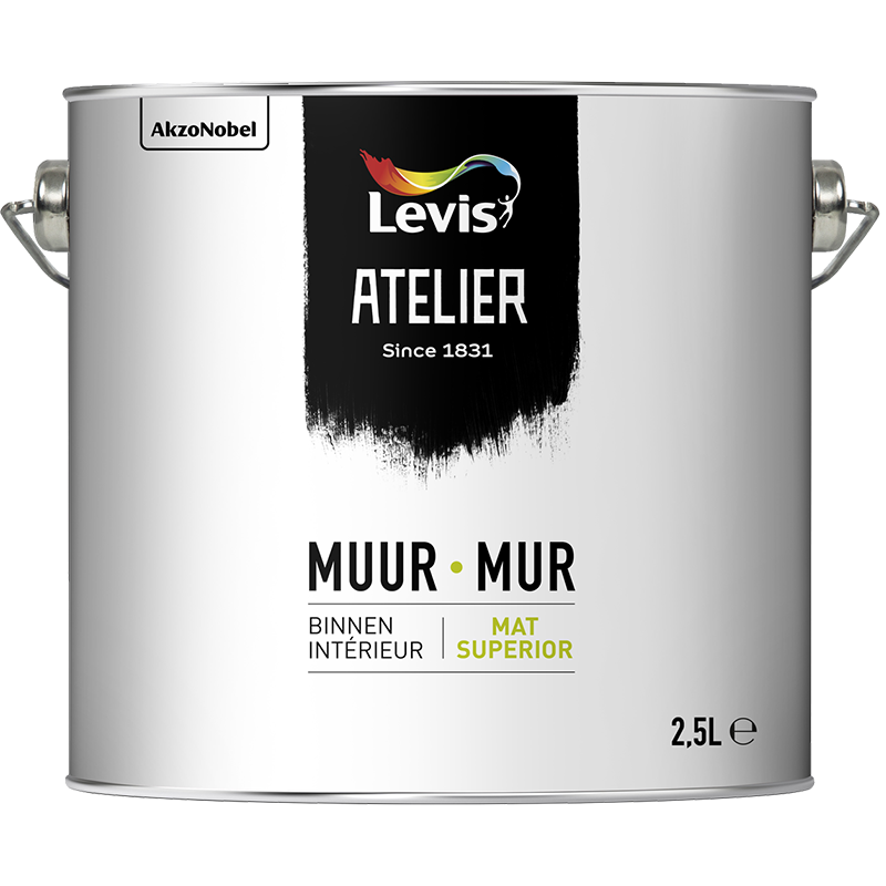 Levis Atelier Mur Mat Superior (Base W) En 5L est une peinture murale en phase aqueuse, très mate, extrêmement imperméable et antitache au pouvoir couvrant élevé.