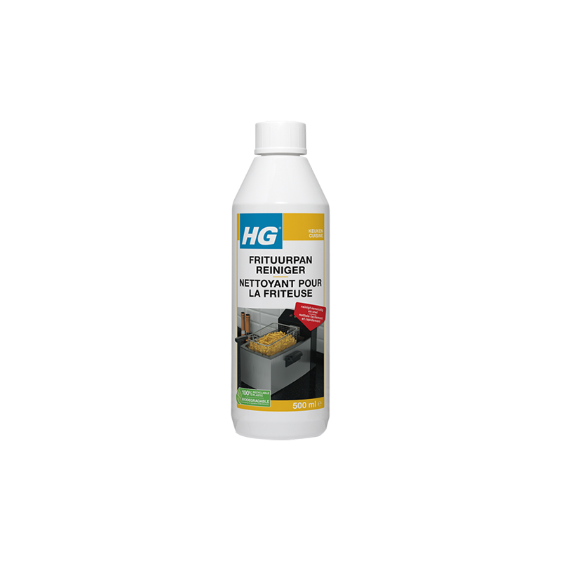 HG nettoyant pour la friteuse 0.5L est un dégraissant puissant pour friteuse élimine rapidement et en toute sécurité la graisse de friture figée, incrustée et brûlée des cuves, couvercles et paniers de friteuses. Équilibré, ce produit pour nettoyer une friteuse agit sans attaquer la cuve, le couvercle et le panier de la friteuse.