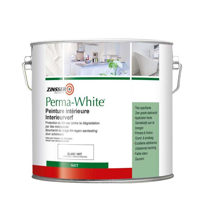 Peinture acrylique en phase aqueuse de haute performance pour intérieur. Protection du film sec contre la dégradation par des moisissures. Idéal pour les locaux humides. Résistant aux éraflures et aux nettoyages (ISO11998 Classe 1).