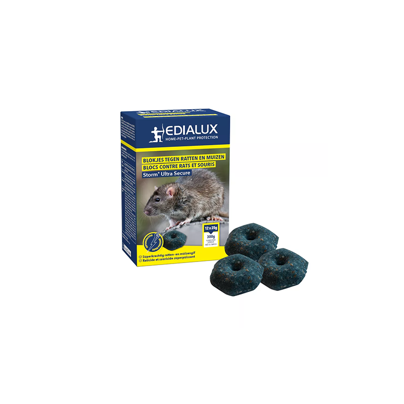 Un appât très efficace contre les rats et les souris à l'intérieur et autour des bâtiments. Les blocs sont durables et stables à des températures extrêmes et conviennent parfaitement à une utilisation dans des zones humides.
