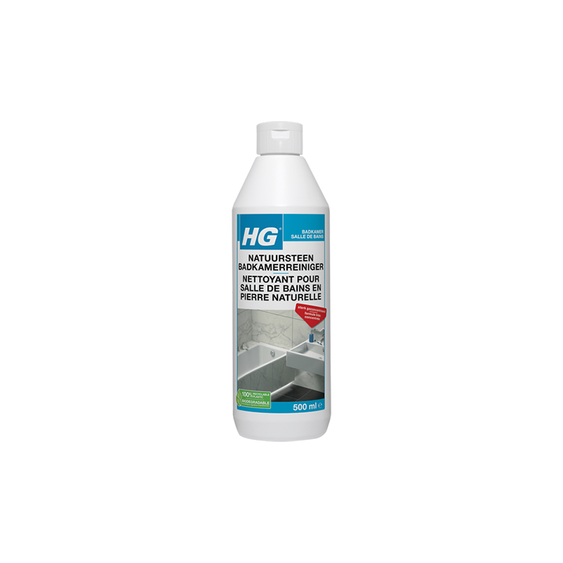 HG nettoyant pour salle de bains en pierre naturelle 0,5L est un nettoyant salle de bain maison destiné au nettoyage régulier et sans danger des surfaces en marbre et autres pierres naturelles calcaires dans la salle de bain. Après traitement avec ce nettoyant salle de bains en marbre, la salle de bain est comme neuve.