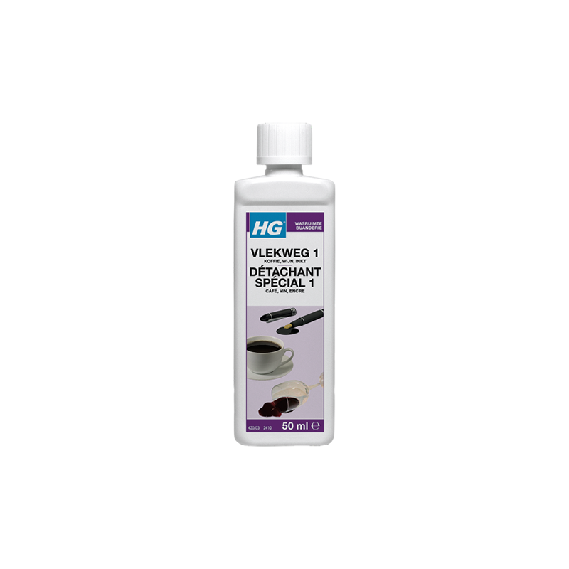 HG détachant spécial 1 0.05L est un détachant linge bébé qui élimine les taches de textiles comme: café, thé, cacao, ketchup, fruits, moutarde, confiture, vin rouge, encre, jus de fruits et de légumes, urine, transpiration, curry et parfums divers. Le détachant spécial n° 1 est l’un des 7 détachants spéciaux de HG.