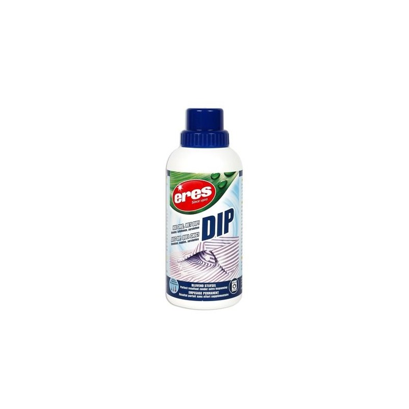 Un traitement avec Eres Dip donne au textile un aspect brillant tout en ravivant les couleurs. Contrairement à l’empesage classique, cette nouvelle formule à base d’acrylates rend les fibres durablement lisses et élastiques. Eres Dip rend le repassage encore plus facile avec un effet durable, même après plusieurs lavages.