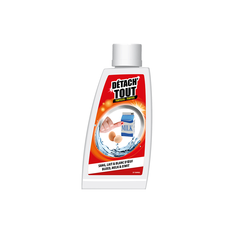Enlève les taches de sang, de lait, de blanc d’œuf et de gélatine des textiles.