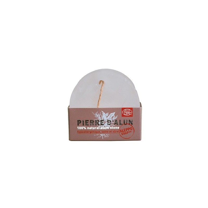 Pierre d'alun certifiée Cosmos Natural, 100 % naturelle et atoxique. Respecte la peau sensible. 24h d'efficacité prouvée !