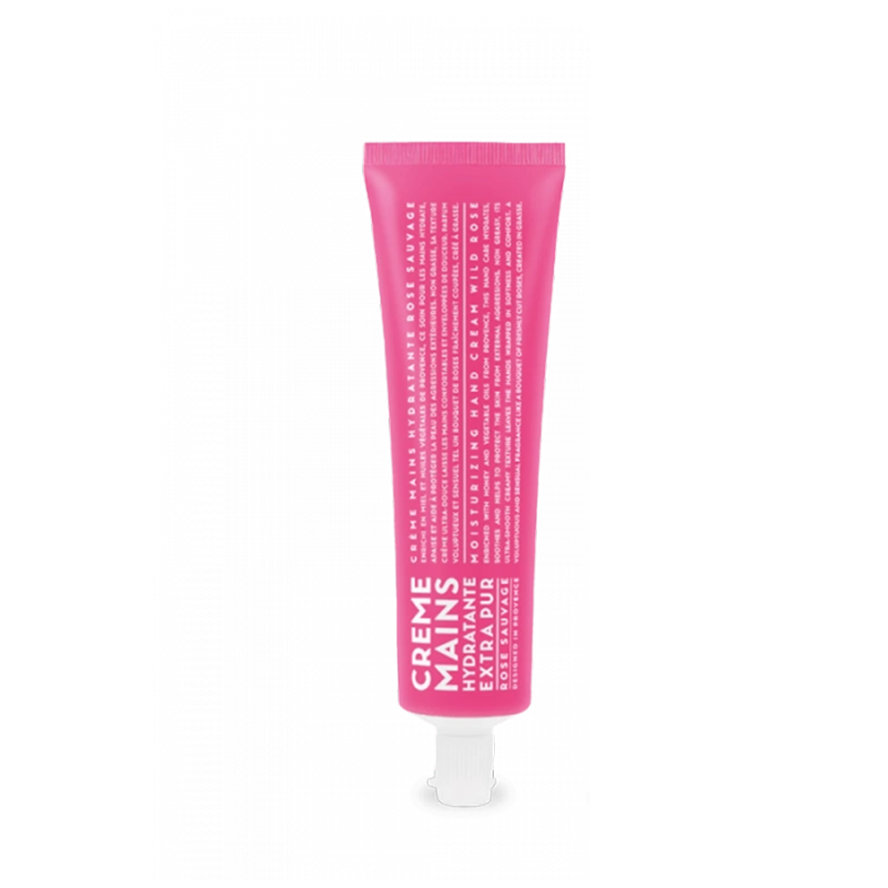 Crème Mains 100ml Rose Sauvage à appliquer juste après le lavage, sa texture légère et non grasse hydrate, apaise et aide à protèger la peau des agressions extérieures, pour laisser les mains confortables et enveloppées de douceur.
