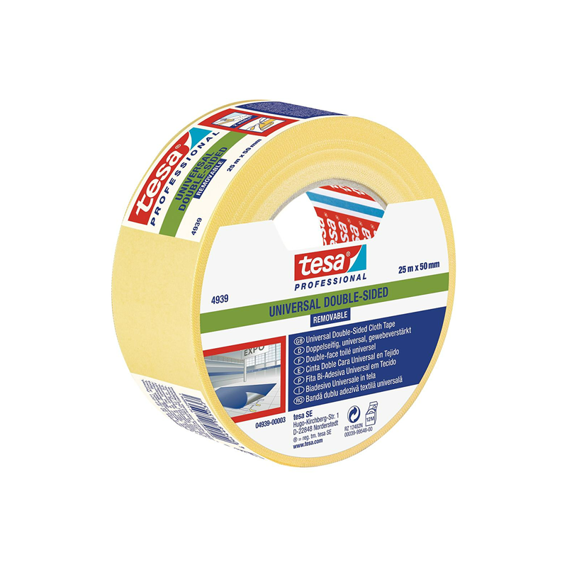 Tesa Double Face Universel Retirable 24Mx50mm amovible. Revêtements de sol textiles temporaires. Peut être utilisé sur de nombreuses surfaces (sauf la pierre naturelle et synthétique). Idéal pour les foires, expositions, conventions et rénovations.