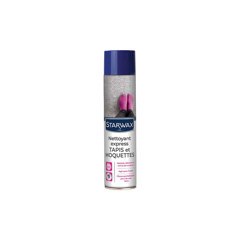 Si le tapis est taché… optez résolument pour le nettoyant de tapis Express de Starwax. A peine 15 minutes après l'application de ce produit, le tapis est nettoyé, sans frotter. Le nettoyant Starwax nettoie, rafraîchit et élimine les taches récentes. Il convient sur des fibres naturelles et synthétiques tout comme pour les zostères, les tissus de mobilier et les sièges de voiture.