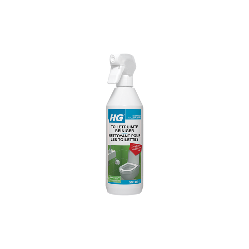 HG nettoyant pour les toilettes 0,5L est un produit nettoyant WC à séchage rapide qui sent bon le frais. Il est destiné au nettoyage quotidien, rapide et efficace de vos sanitaires. Ce spray WC maison convient pour la lunette des toilettes, la face externe de la cuvette, la chasse, le lave-mains, le robinet et même la poignée de la porte.