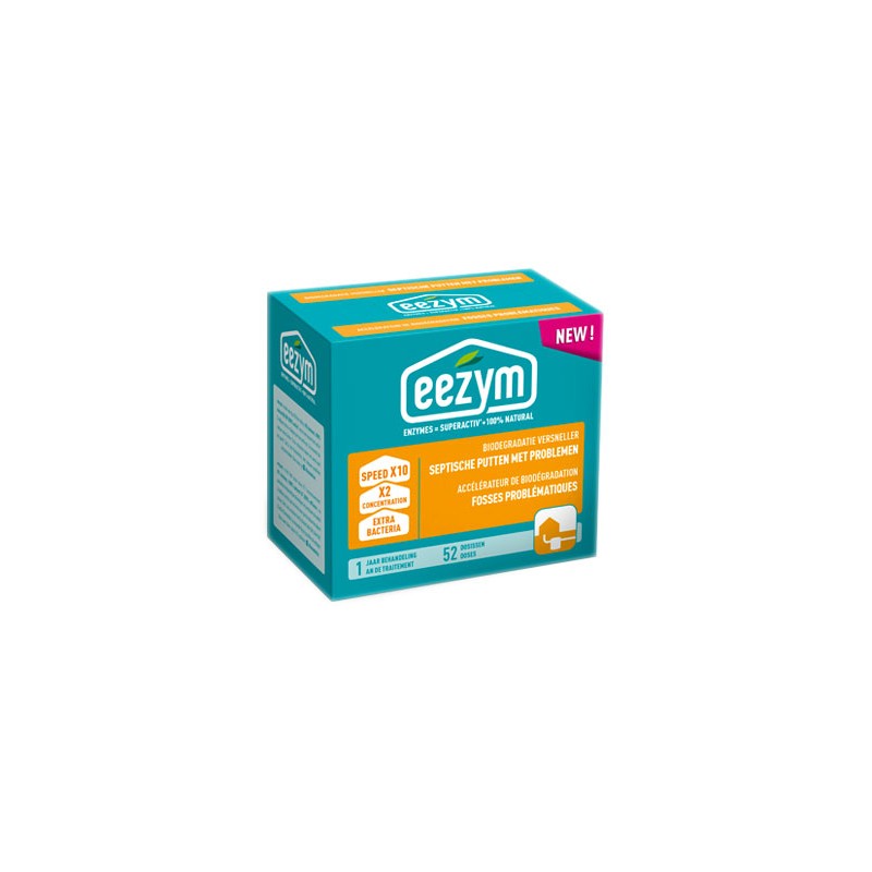 Votre fosse septique est surchargée ou trop petite ? Traitez alors votre fosse avec l'Accélérateur Biodégradation Fosses Problématiques de Eezym ! Ce produit écologique dissout tout résidu organique 10x plus vite que ses concurrents-activateurs et dégrade plus rapidement les graisses. Il contient 2 fois plus d'enzymes que l’accélérateur classique de Eezym.