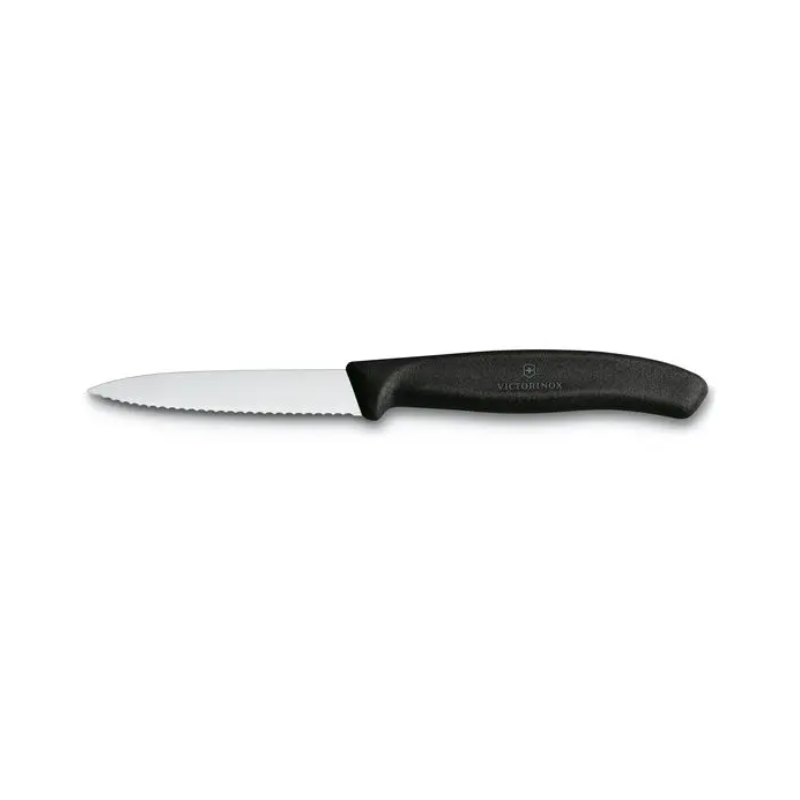 SWISS CLASSIC couteau d'office, denté, 8 cm, noir